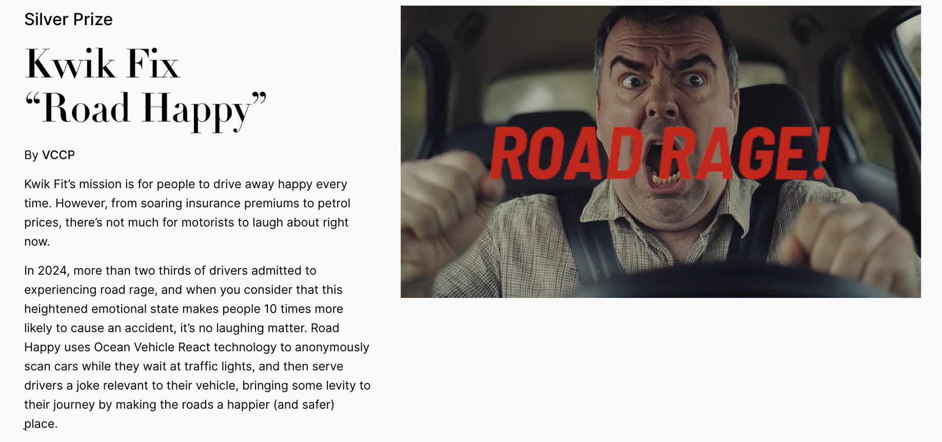 FFS. We picked up silver again. First Lovehoney. Then again for Kwik Fit, when we tried to cheer up angry drivers with jokes tailored to the car they were driving. Not sure if we've fixed road rage, but we did get to write some dad jokes.